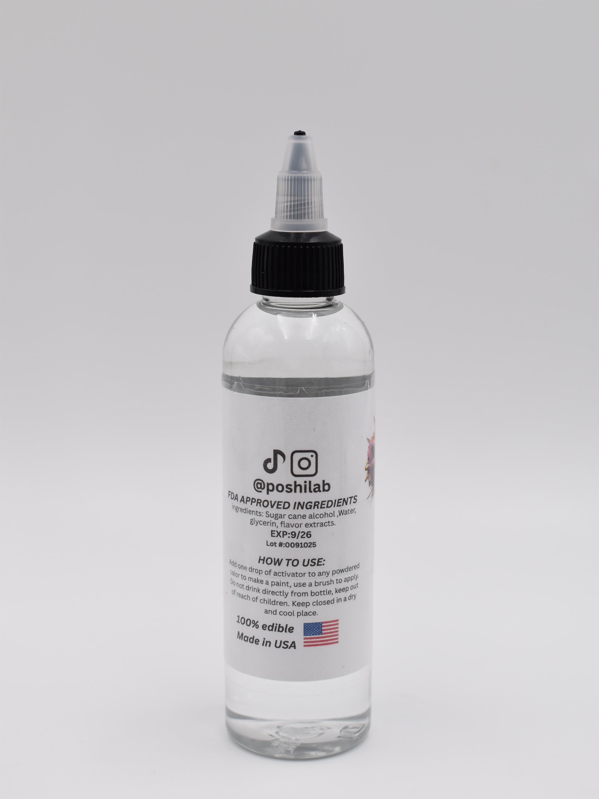 Transform any edible powder into vibrant, easy-to-use liquid paint with Poshi Lab’s Color Activator. Perfect for culinary artists, bakers, and creatives, this innovative solution brings your edible creations to life with precision and ease. Just a single drop is enough to create smooth, flowing paint, and if it dries, simply add another drop to revive it. Available in two convenient sizes, this product is designed to meet the needs of both small and large projects.
